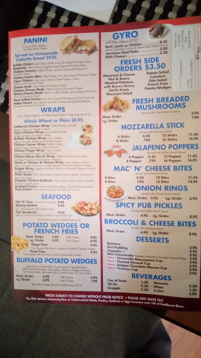 “ Bright cheerful place with all sorts of yummy food. Nice surprise walking in here. Definite step up for this small shopping plaza. Wings (several different sauces), pizza, cheese steak (chicken or beef), hot and cold subs, burgers, salads and more. A few small tables - mostly take out. Only one visit so far, but very positive: nice cheerful service, great wings. I'll be back! ”
